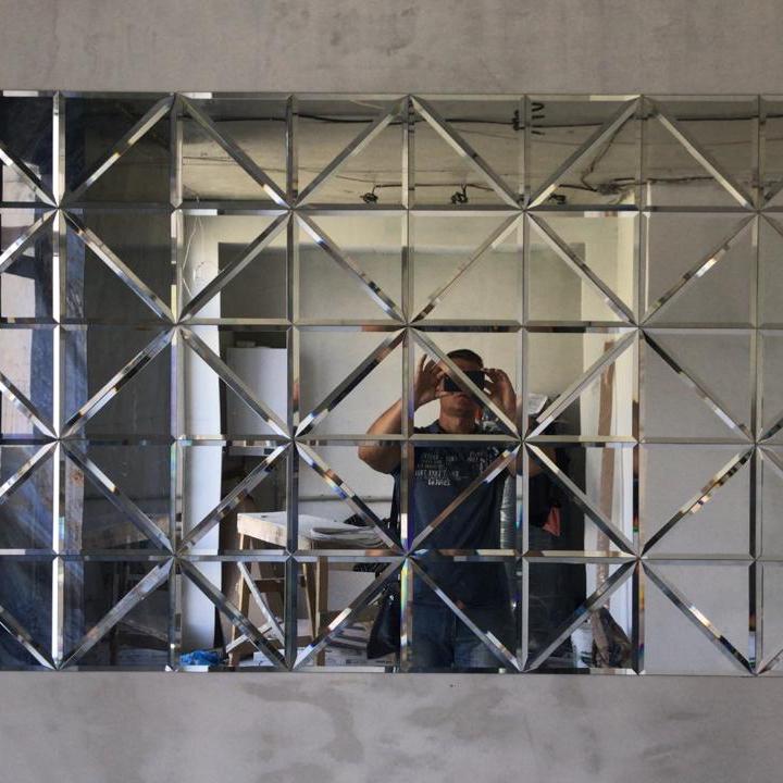 Использована зеркальная серебряная плитка квадратной формы, размером 18х18.